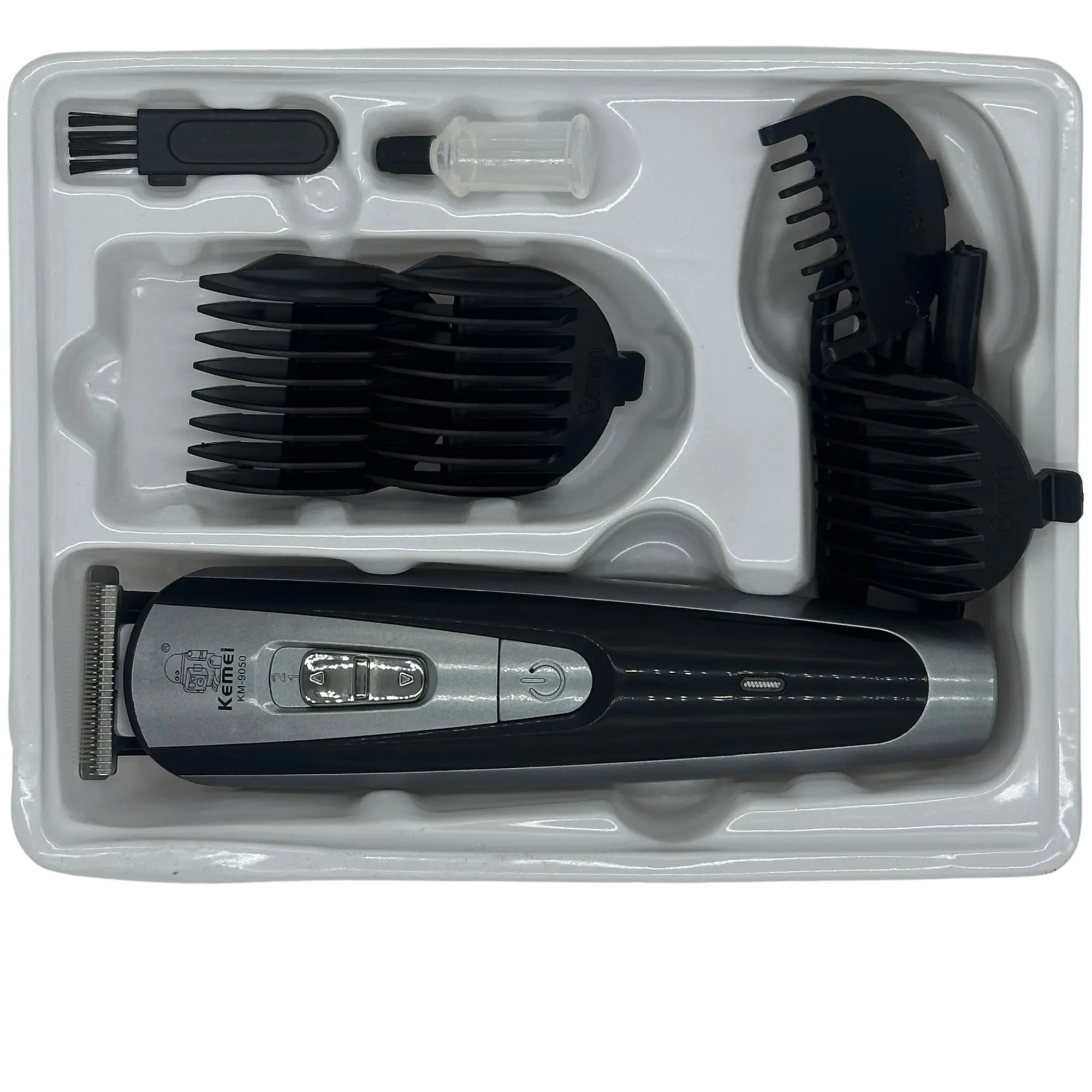 Kemei KM-9050 Hair & Beard Trimmer পুরুষদের জন্য একটি শক্তিশালী ও স্টাইলিশ গ্রুমিং ডিভাইস। এতে রয়েছে Adjustable Blade, 4টি Guide Comb, কম শব্দে কাজ করার সুবিধা এবং 60 মিনিট কর্ডলেস ব্যবহার, যা দাড়ি ও চুল ট্রিমিংকে করে তোলে সহজ ও নিখুঁত।